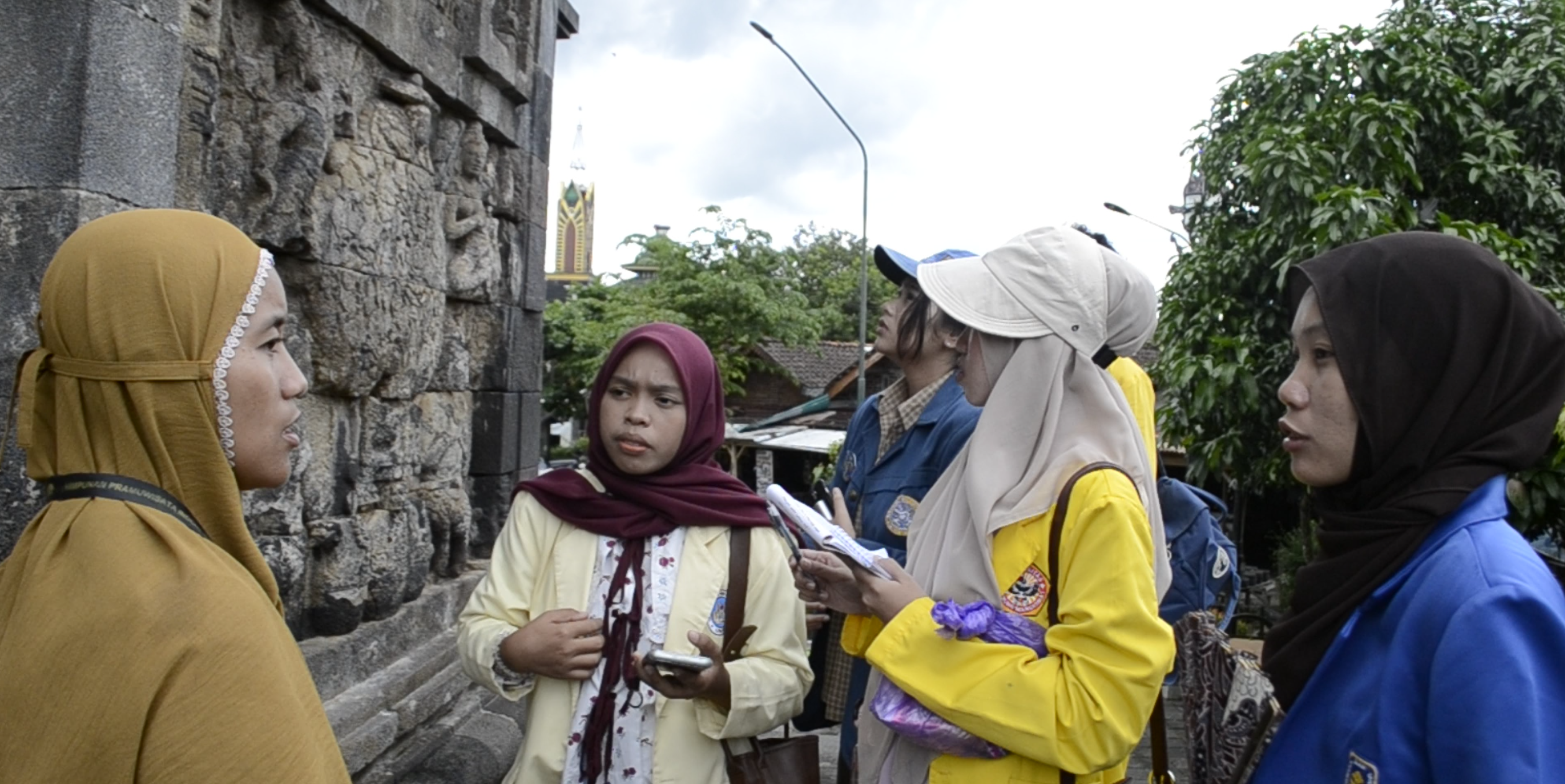 The fourth day is the highlight of the Citizenship Workshop because each group (consisting of 5 people) will go into the field and collect data according to the theme “Culture, Nature and Future”. Places to visit: [1] Jenang Krasikan Culture, [2] Samberan Site, [3] Pawon Temple and Sendang Site, and [4] Sambeng’s Progo River traditions. Previously, participants had prepared for observation, including a list of questions, informant contacts, and a focus on Culture, Nature, and Future. Each group was given 4 hours to visit each location, followed by immediate mind mapping and presentation preparation.