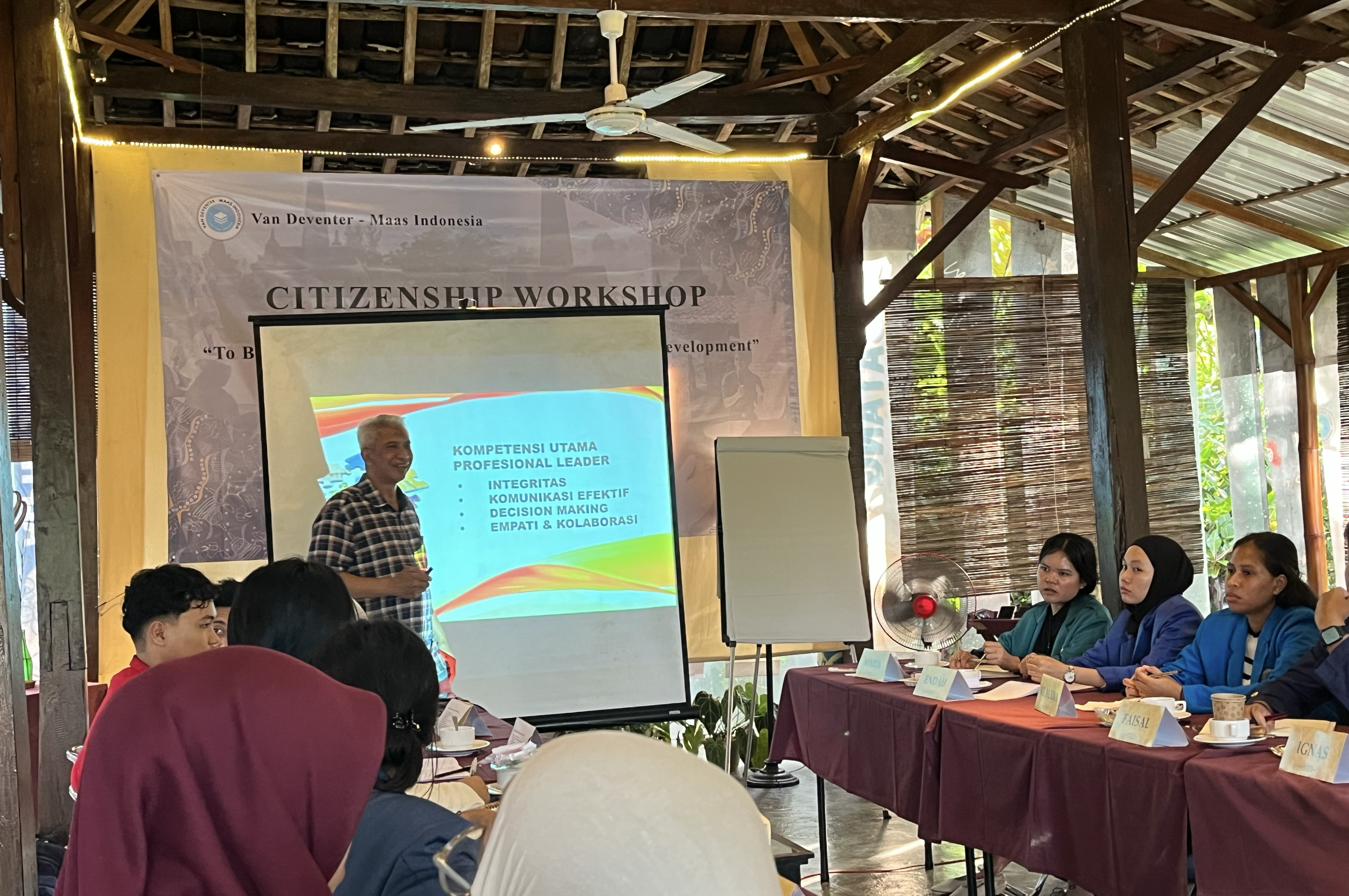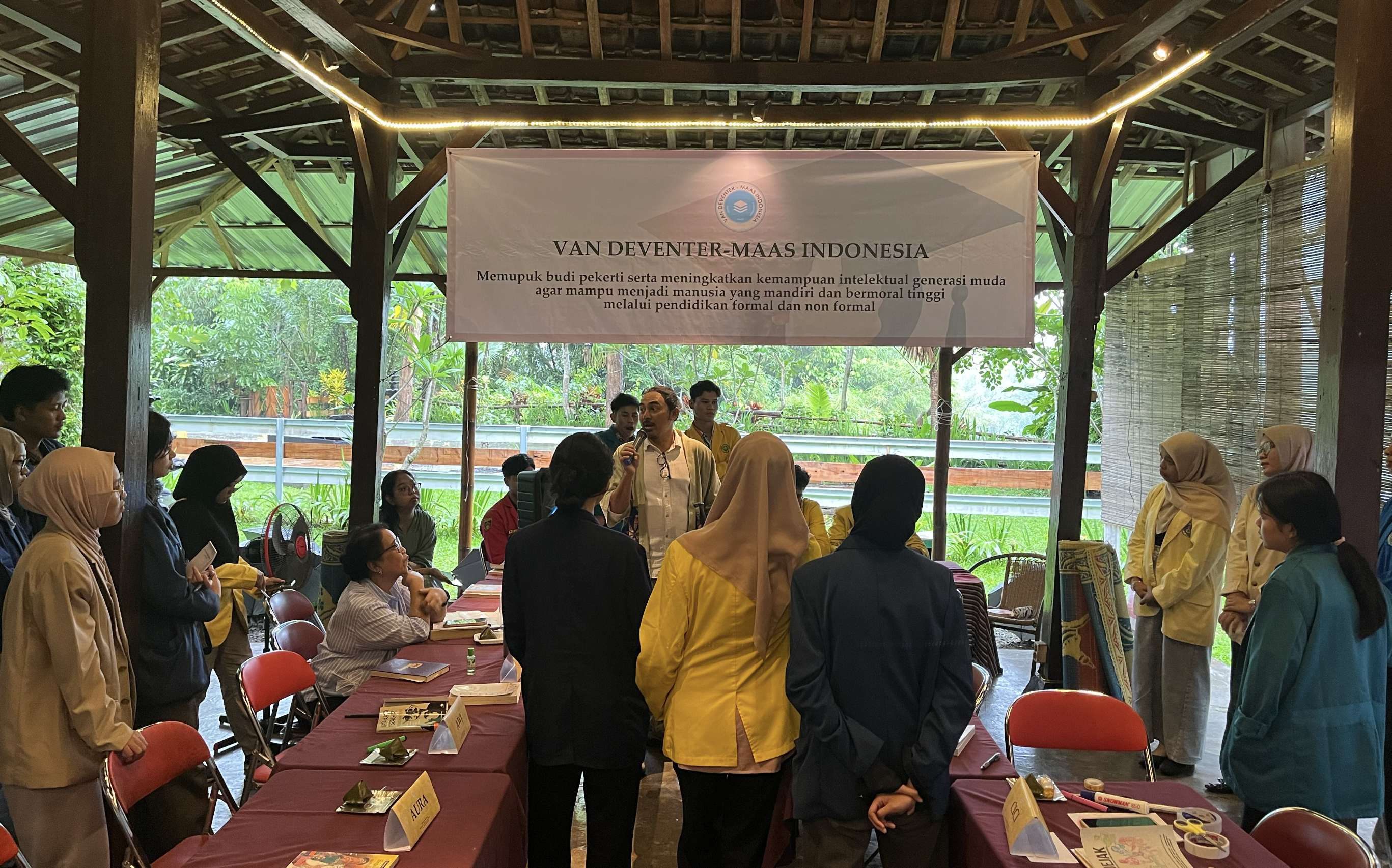 November 25-29, 2025, Van Deventer-Maas Indonesia held a Citizenship Workshop at Rumah Boedi, Borobudur, Central Java. Twenty participants from all over Indonesia took part in this event with the theme “Culture, Nature, and Future.” The workshop engaged participants in mindfulness, critical discussions on Indonesia’s challenges, essay writing, child safety awareness, and field explorations of local heritage sites. Each day, participants attended a Mindfulness session to focus and truly understand their presence in the workshop.