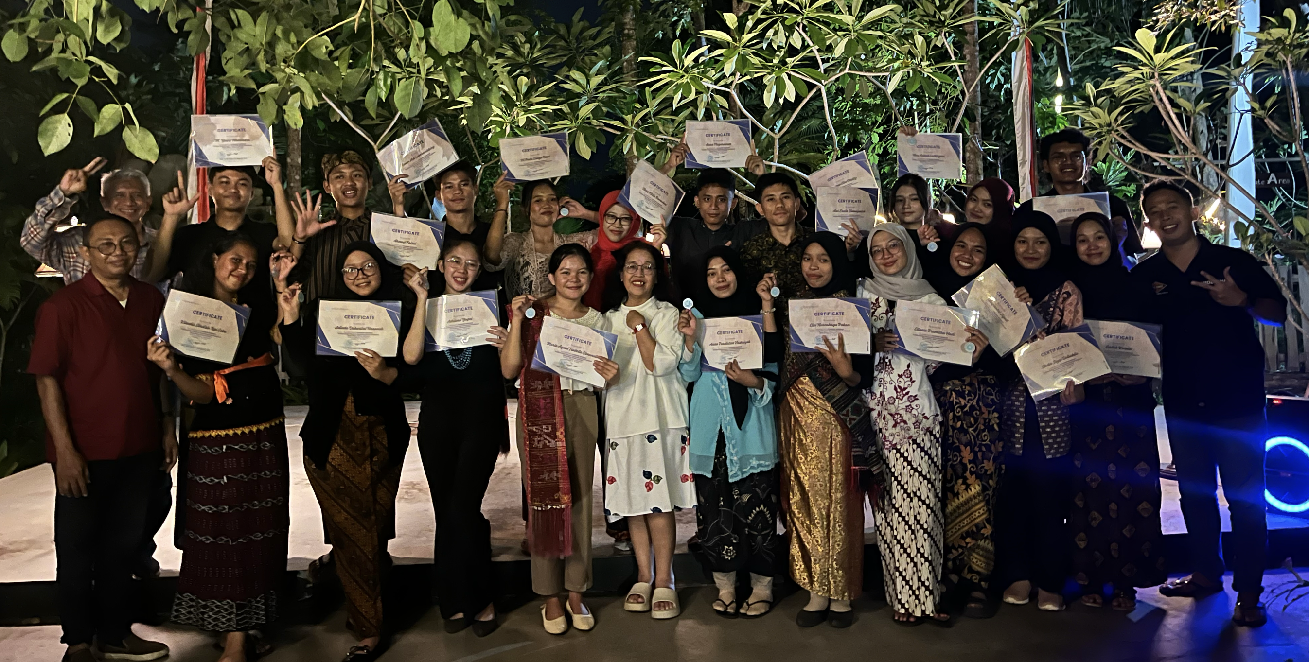 On the last day, each group presented the results of their observations on their respective topics. Group 1 (Pawon-Sendang: sacred sites, tourism economy); Group 2 (Peradaban Air Sambeng: njolo tradition, larung sesaji, Progo tourism potential); Group 3 (Samberan: Hindu-Buddhist tolerance, agro-tourism); Group 4 (Jenang Krasikan: traditional recipes, future branding). Zaki Habibi’s evaluation: encourage curiosity as a motivator, add storytelling illustrations. The series of activities concluded with an Art Performance night featuring cultural performances from each region (Sumatra, Kalimantan, Java, Sulawesi, and Nusa Tenggara) in the form of traditional songs, dances, and poetry. See you at next year’s event.