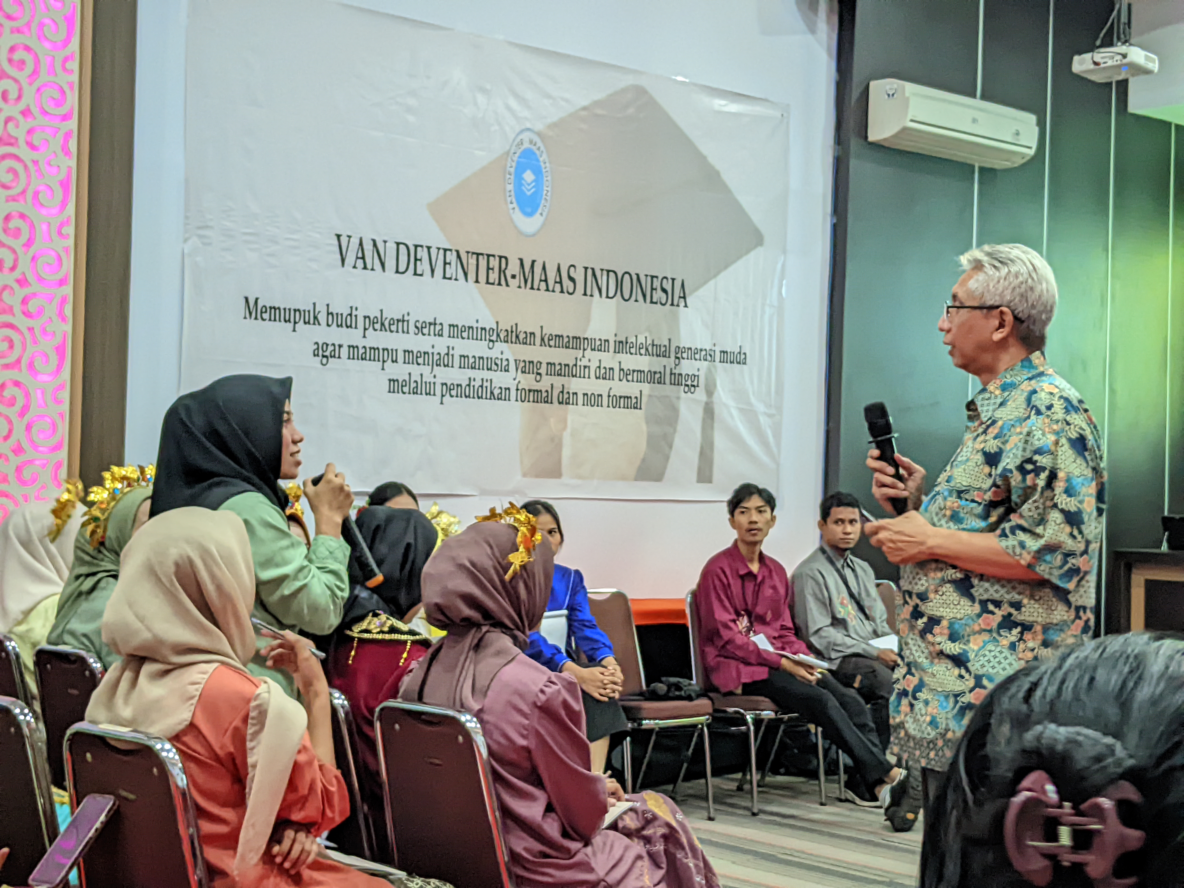 On the last day, participants were reminded about the history of VDMS/YVDMI. This was followed by a sharing session with Henri Muhardiyanto on “Tips to be a Professional Employee.” Most participants (95%) want to be professional workers after graduating from college. The tips provided included preparation before the interview, starting the interview, answering questions during the interview, and responding to acceptance or rejection after the interview. On this occasion, Ansar Tario Jusuf (an alumnus of Gorontalo State University) shared his experiences from becoming a grantee to now becoming the Deputy Principal at SMKS Bina Mandiri Bone Bolango. He said that the activities held by VDMI had an impact on him as a teacher. He advised participants to take the positive things from being grantees and to be active in activities in their respective regions.